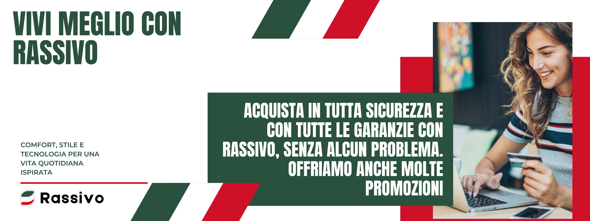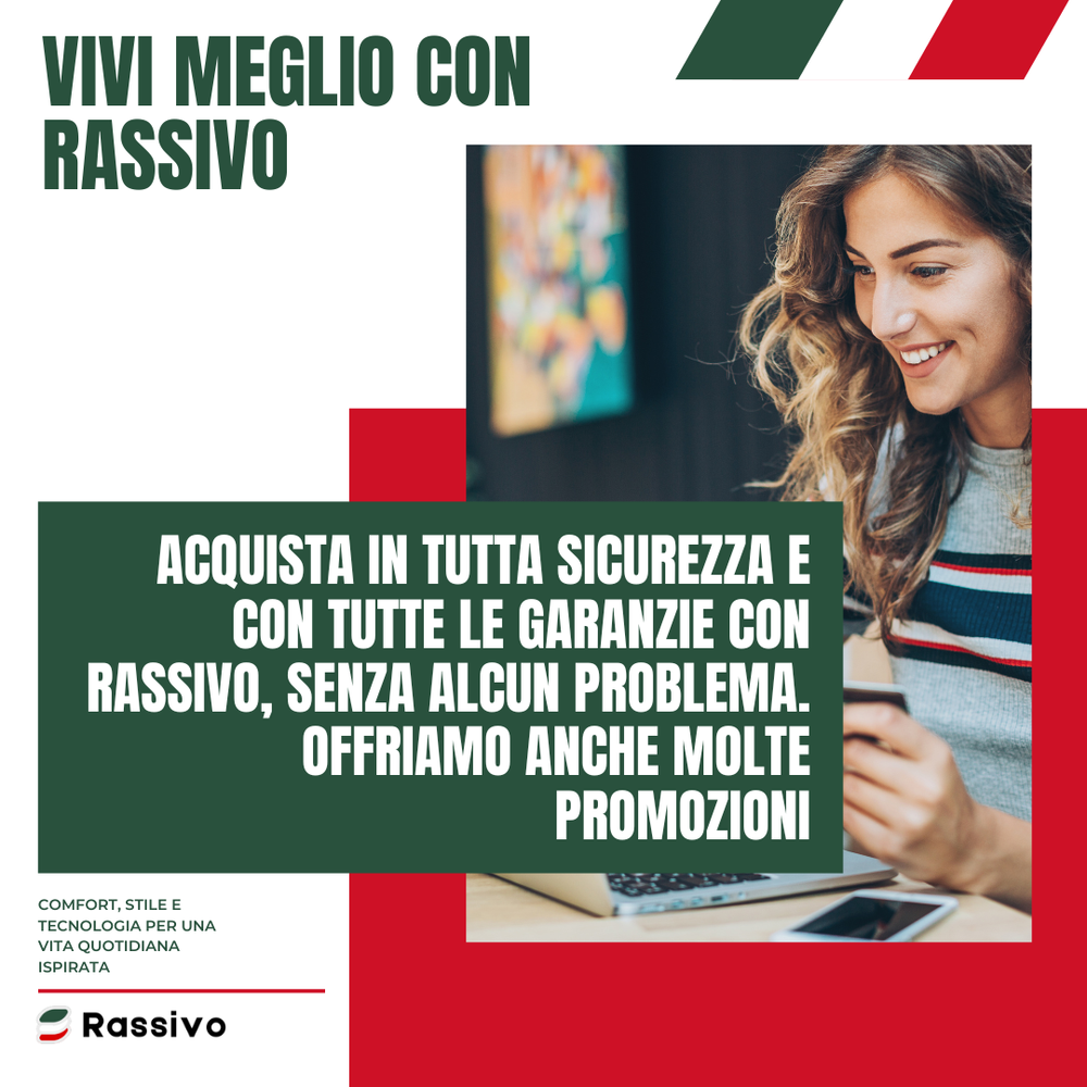 Da Rassivo, la soddisfazione dei nostri clienti è la nostra priorità. Goditi un acquisto rapido e sicuro, con un servizio clienti sempre disponibile per rispondere alle tue domande e offrire soluzioni immediate in caso di necessità. Inoltre, offriamo resi e cambi facili entro 30 giorni. Con Rassivo, acquisti in tutta tranquillità.
